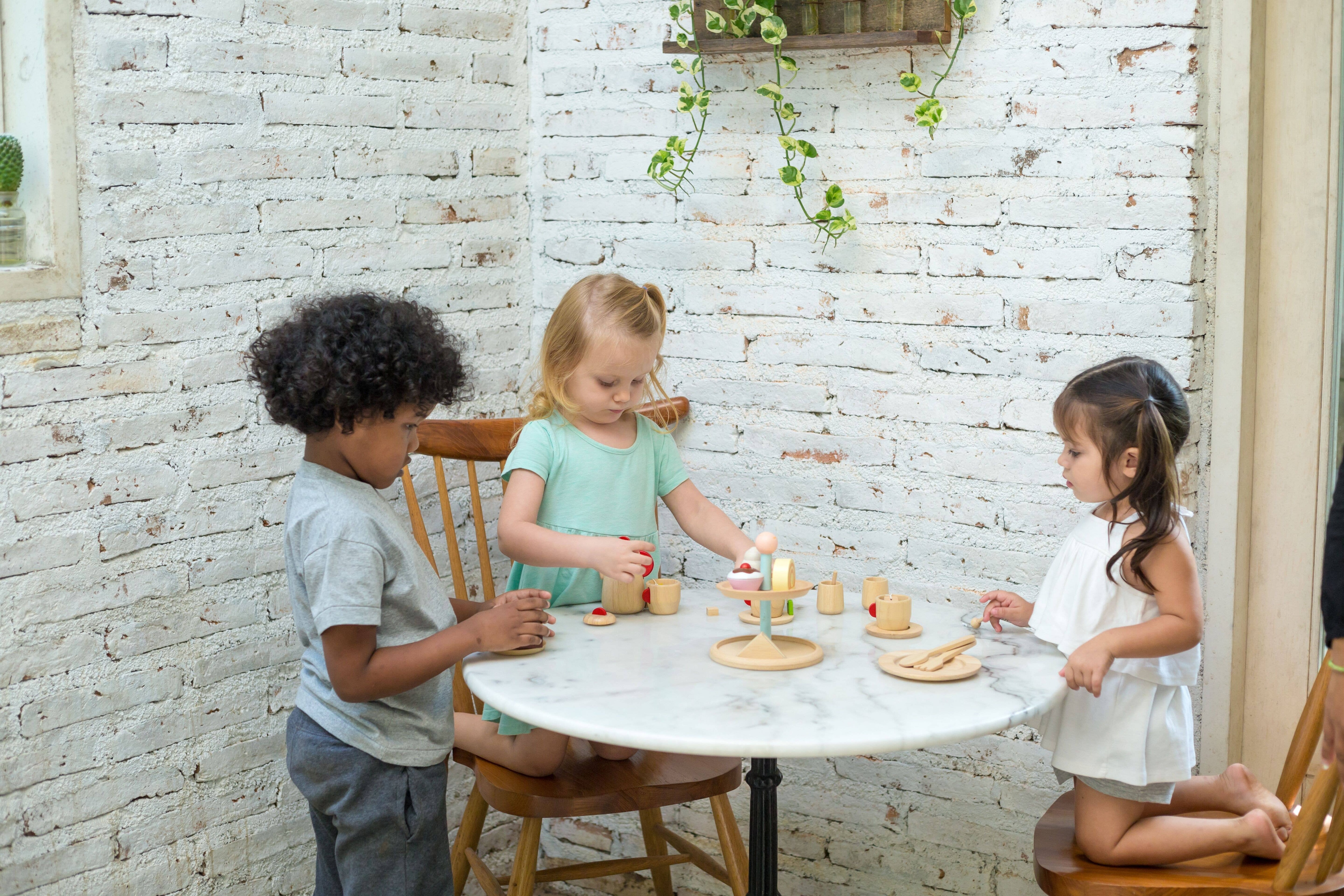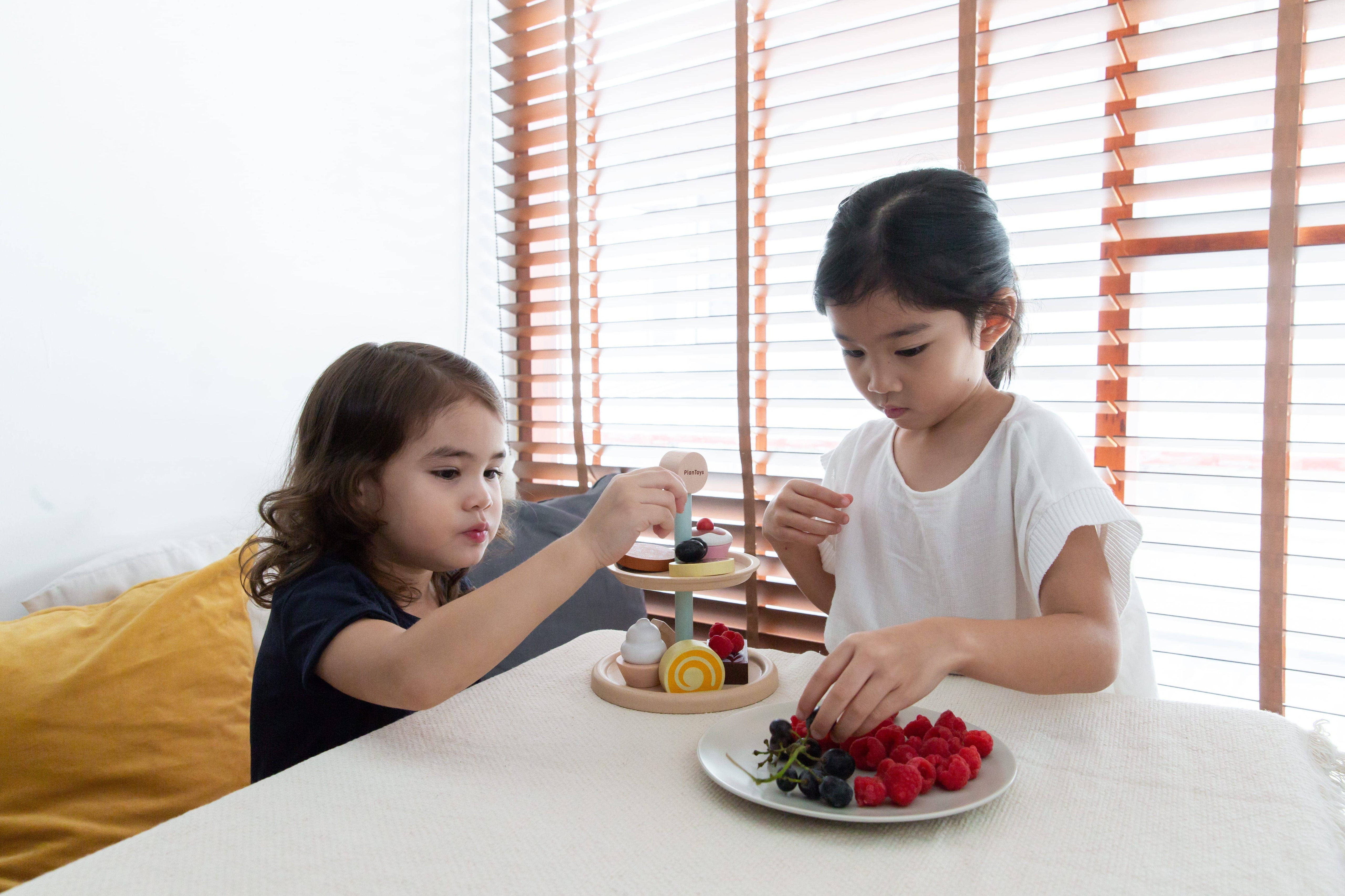 Imagination and play time is so sweet with this colorful Bakery Stand Set. The set consists of 1 two-tier cake stand, 1 sandwich, 1 slice of Swiss roll, 1 chocolate cake, 2 biscuits, and 2 cupcakes.