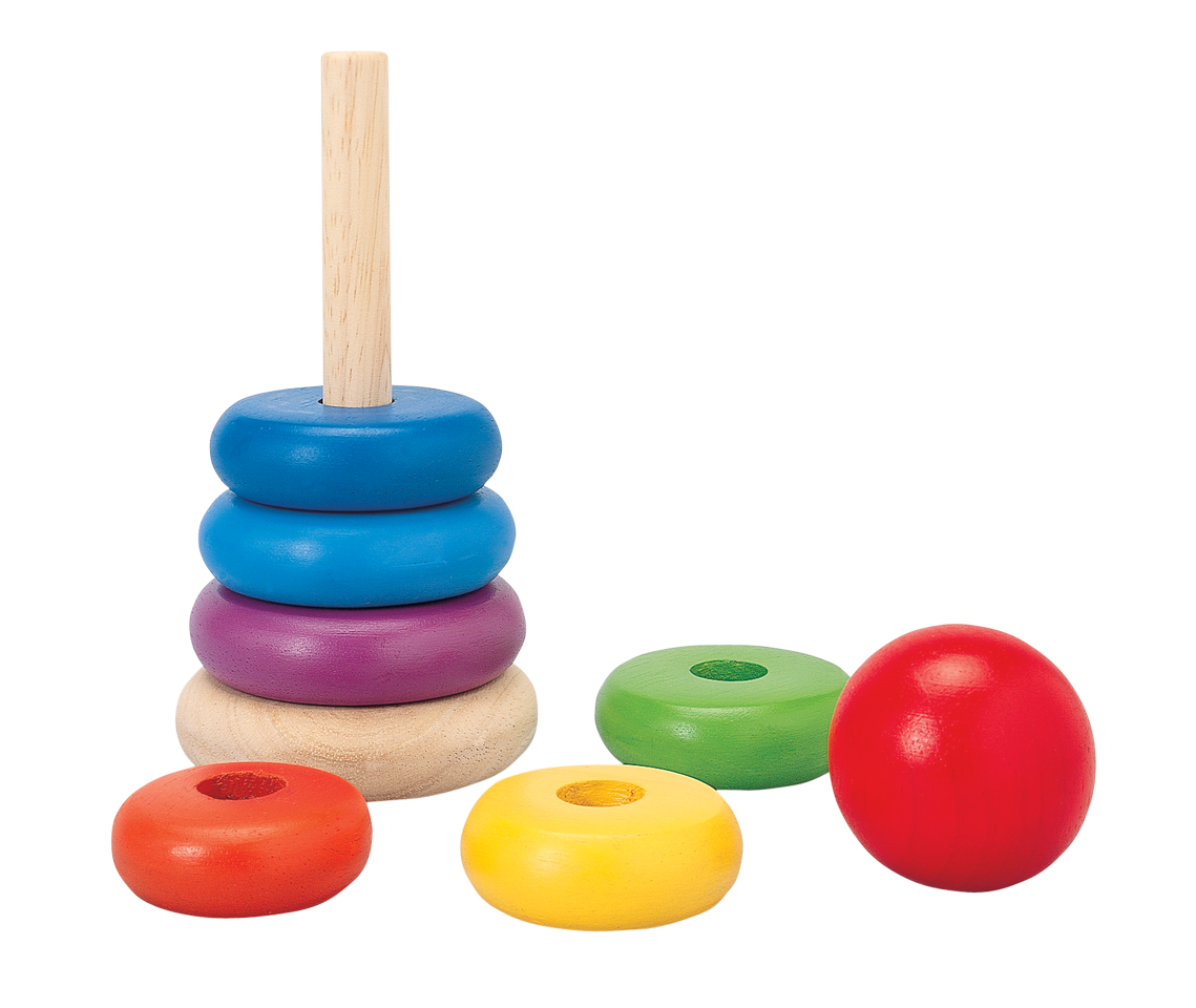 The wooden ring set teaches children about sizes and colors. As a safety precaution, the central rods is collapsible.